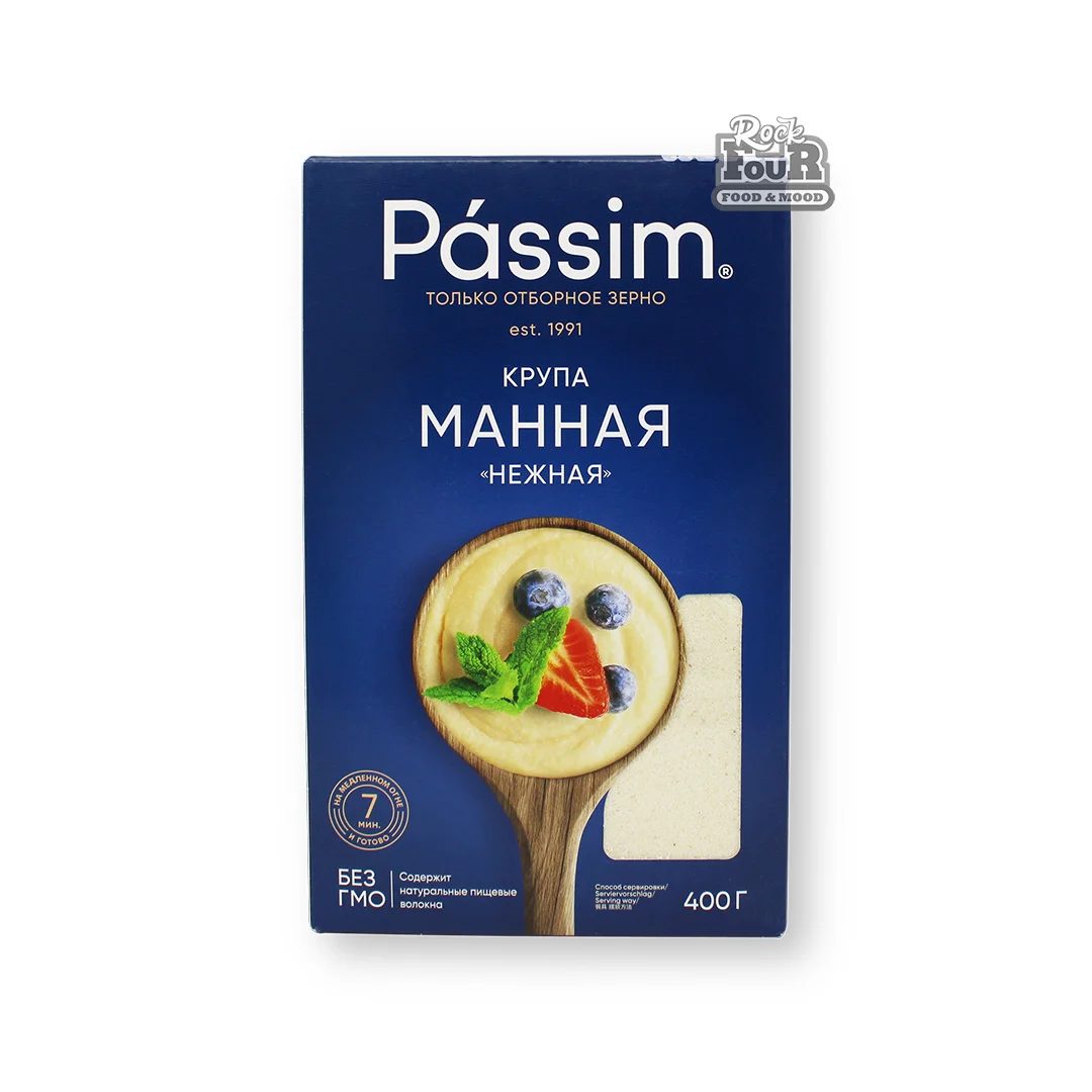 Passim semolina is a high-quality product made from durum wheat. It is finely ground and snow-white in color, which gives dishes a sophisticated look. Passim semolina is ideal for making porridges, puddings, casseroles and other desserts.